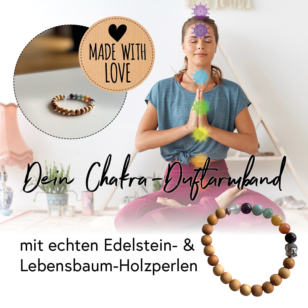 Diese wunderschönen Chakra-Duftarmbänder fertigt Annika selbst an und somit ist jedes einzelne Armband ein Unikat! Jedes Armband besteht aus hochwertigen Lebensbaum Holzperlen und sind perfekt für Duftschmuck geeignet. Sie nehmen das ätherische Öl schnell auf und geben es nach und nach wieder ab, sodass der wunderbare Duft und die Wirkung des ätherischen Öls lange bestehen bleibt. Anders als bei Lavasteinen, färben die Holzperlen nicht ab!